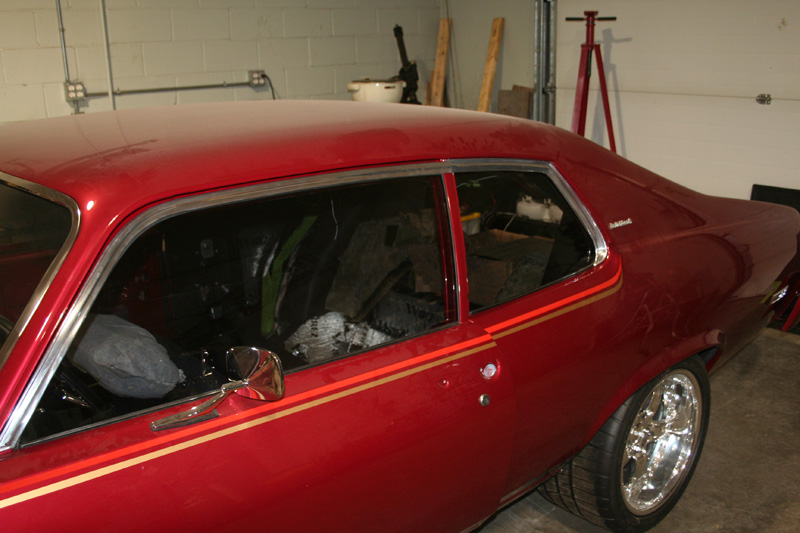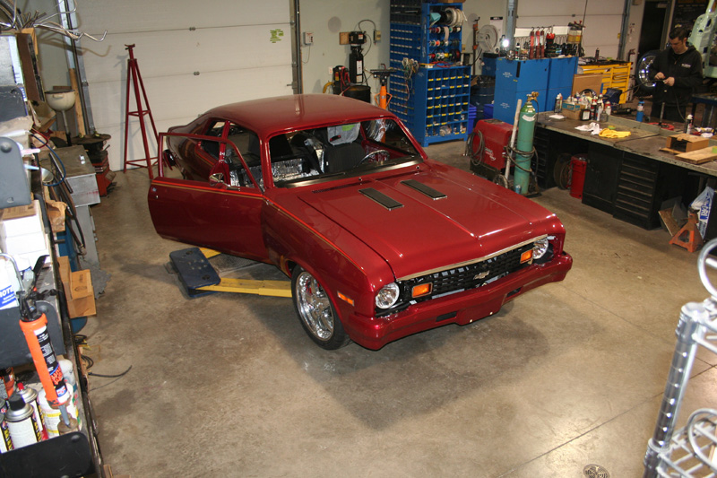 Boot Hill turned Danny's '74 Nova into an awesome pro touring machine that includes: '74 Nova suspension Comp Engineering 4 Link set up, Modified LS3 pushing 500 plus HP, Custom interior ensuring we still have the original Hatch back and rear seats fold down like the good old Drive in Movie days, Massive 335 Tire on custom BOZE rims give's with adjustable coil over suspension it an amazing stance. This Nova is also equipped with custom Audio and Vintage Air (Needed out in that desert). Going from Kirkland Lake to Dubai will make this an extremely rare car in that part of the world.